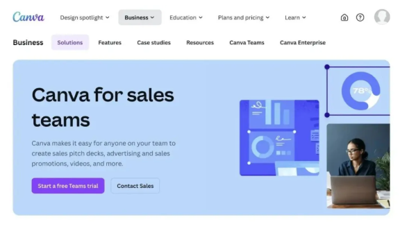 例如,Canva为不同受众创建着陆页,如销售团队和学生: