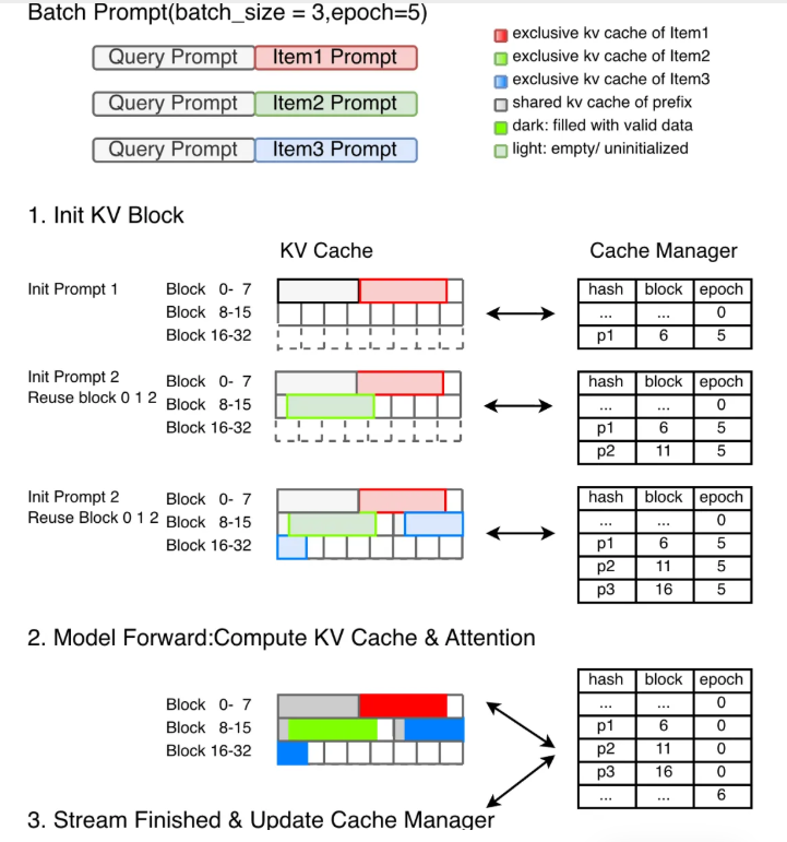 - 隔离机制: 当一个批次正在推理时,其预注册的 Block 被标记当前批次的Epoch,该 Block 仅对同一批次内的其他请求可见,对全局其他批次的请求不可见。