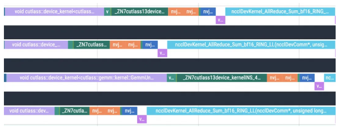 测试表明,如下图timeline所示,方案B受限于模型结构(MoE导致的专家节点负载不均衡)以及TP模式下通信开销,当出现个别慢节点时,整个Batch的完成时间会被拖慢;相比之下,方案A中各实例相互独立,无通信开销,可以更好的利用数据并行性。在实际测试中,BS=16的情况下,方案A比方案B降低12ms,成为线上实际部署模式。