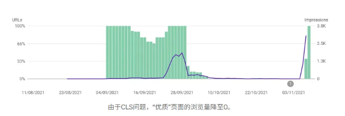 CLS(累积布局偏移)用来衡量网页的视觉稳定性 —— 虽然很多网站的 CLS 表现不错,但仍有四分之一的网站达不到建议阈值,提升空间还很大。