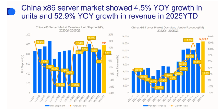 2025年第三季度,IDC发布了《2025Q3中国x86服务器市场概览》。数据本身并不惊艳,但把这些数据拼在一起,你会发现:中国服务器市场,正在经历一场结构性的裂变。