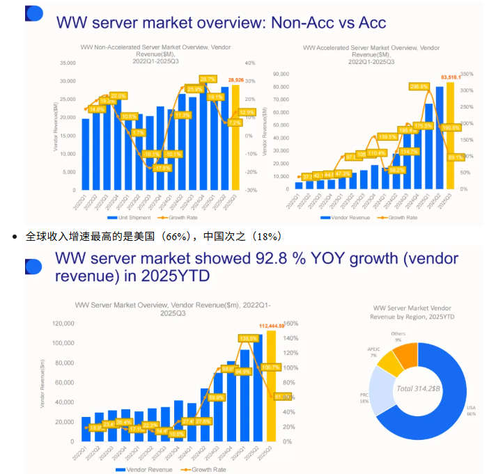 - 非加速服务器(Non-Accelerated Servers)仅增长 33.4%