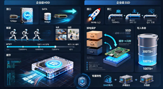 1. 企业级机械硬盘(HDD)核心参数:重点看“接口、转速、MTBF、缓存”