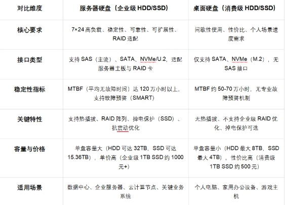 3. 服务器硬盘vs桌面硬盘:核心差异一张表看懂