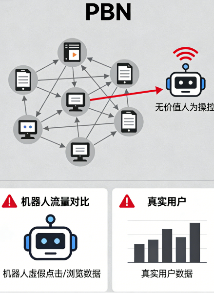 购买 PBN、链接农场的垃圾外链,人为伪造外链数量