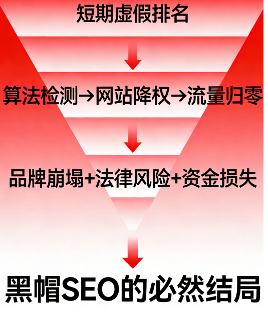 很多人被黑帽 SEO 的短期效果迷惑,却忽视了其背后无法挽回的损失,其真实成本远超短期收益: