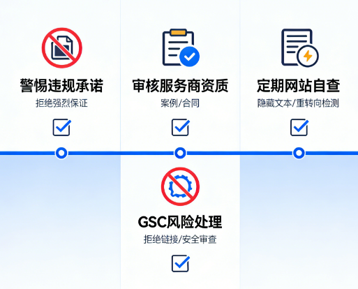- 警惕违规承诺:面对保证排名、低价批量外链、一夜霸屏等夸张承诺,直接拒绝,这类服务必然采用黑帽手段。