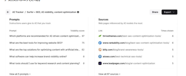 追踪这些提及内容还能帮助您了解AI在处理特定查询时认为哪些来源具有可信度。