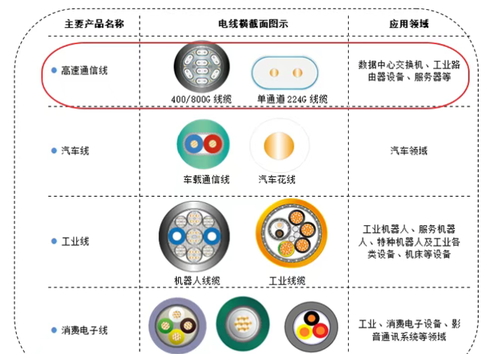 公司子公司乐庭智联生产的高速通信线为无源DAC铜电缆,在短距离信号传输方面,具备低功耗、高性价比、高速率等优势,广泛应用于数据中心、服务器、交换机/工业路由器等数据信号传输,主要客户包括安费诺、豪利士、莫仕、泰科、立讯等,间接进入英伟达供应链。公司单通道224G高速通信线缆已经成功量产,率先抢占市场,进入下游头部客户供应链。