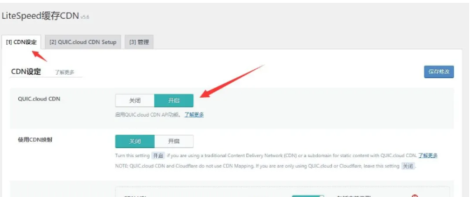 首先,转到 LiteSpeed Cache > CDN 设定,点击启用 QUIC.cloud 并保存修改。