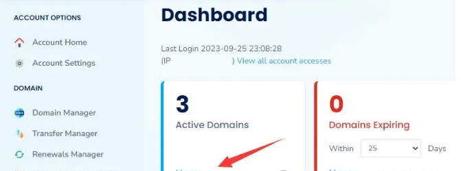 首先,登录你的 NameSilo 域名账号,点击 Mange 链接。
