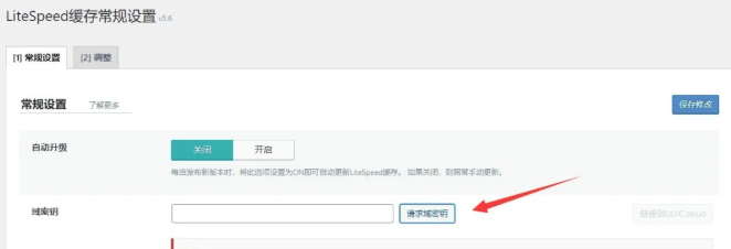 插件装好后,转到 LiteSpeed Cache > 常规,点击“请求域密钥”密钥。