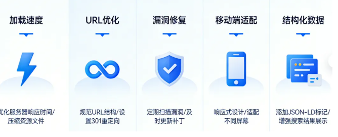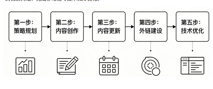 SEO优化是连贯体系,关键步骤为五大方面,且环环相扣,支撑排名稳步提升。