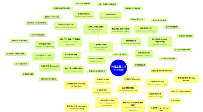 | Feature Engineering 2.0 | 语义结构化输入(文本指令、知识块、工具描述) | 知识与语义结构(Feature as Knowledge / Behavior) | 语料构建、RAG预处理、上下文设计、Agent工具描述 | 大模型训练与Agentic AI |