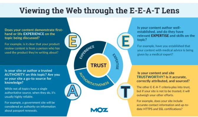 谷歌在《搜索质量评级指南》中,明确将E-E-A-T(经验、专业性、权威性、可信度)作为评估内容质量的核心标准。