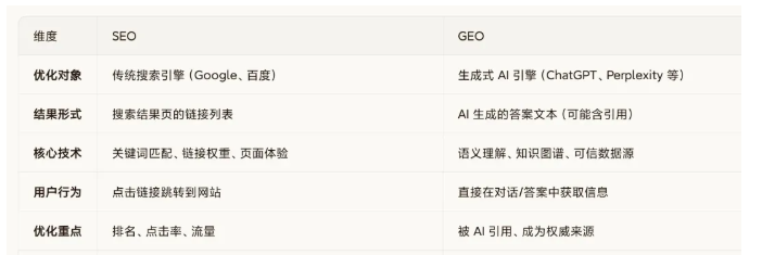 三、SEO 与 GEO 的主要区别