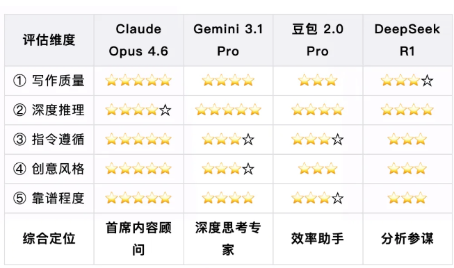 2026 主流 AI 模型深度对比:Claude、Gemini、豆包、DeepSeek 谁更适合工作?