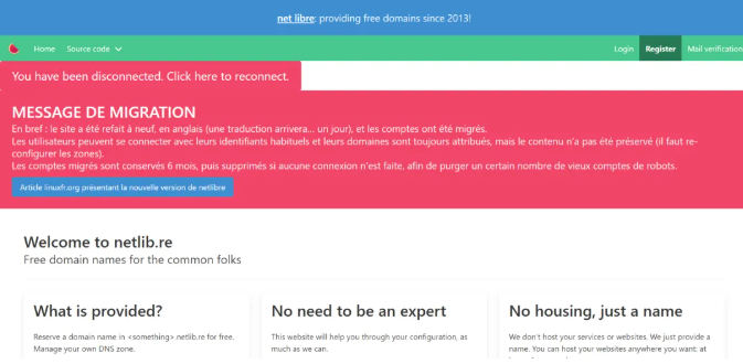 netlib.re 它是一个非常老牌的免费域名服务网站,早在 2013 年 就已经开始运营了,至今还在稳定提供服务。