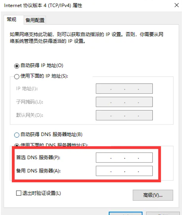 windows 在这配置:控制面板 -》网络和共享中心 -》更改适配器设置 -》选中目标适配器右键选择属性 -》Internet 协议版本 4(TCP/IPv4)-》配置 DNS 地址。
