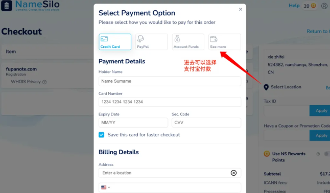 选择 NameSilo 除了价格低,更重要是支持支付宝,对国内用户支付友好。