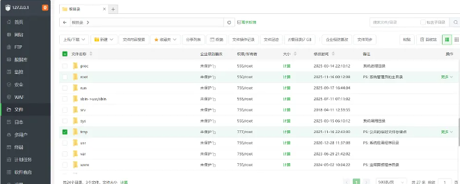 1)在宝塔面板的“根目录”下,有一个“tmp”的公共临时文件存储点,把里面的“日志”文件和各类临时文件删除。如果怕误删除文件,造成系统损害,可以先备份后删除