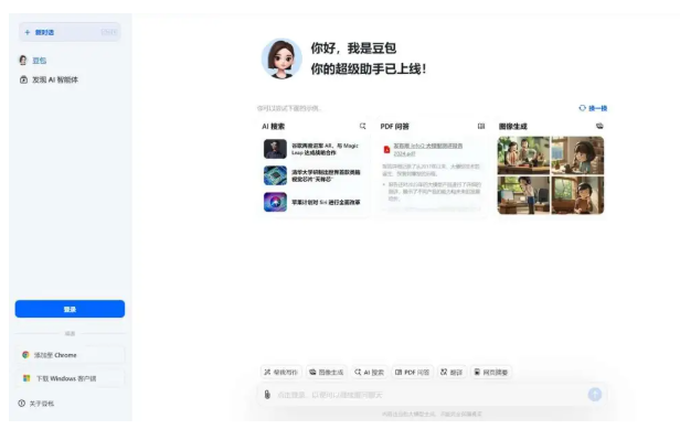抖音旗下的免费 AI 聊天助手,堪称 ChatGPT 国内平替!支持语音对话、图片理解,还能生成短视频脚本。可谓是学生党的“神作”——完全免费,无任何的调用次数的限制,完全满足了学生党的“狂喜”之心!