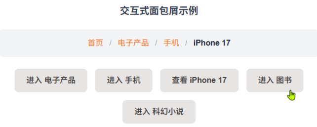 当用户点击“电子产品”>“手机”>“iphone 17”时,在商品页面的顶部显示: