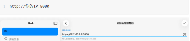 在 Bark 里填上你的服务器地址,例如:http://你的IP:8080