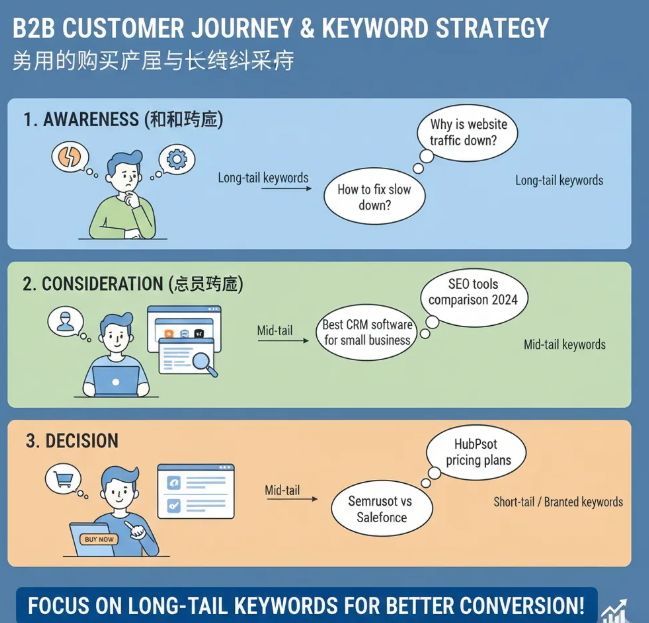 这意味着什么?等他主动找你的时候,基本已经心里有数了。所以你得在他们搜索的早期就出现,影响他们的决策。