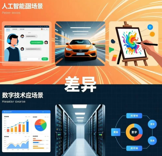 在数字化转型浪潮中,人工智能(AI)与数字技术作为两大核心驱动力,正深刻重塑产业格局。本文将从技术本质、应用场景、发展路径等维度,系统分析二者的区别与联系,为企业战略决策提供参考。