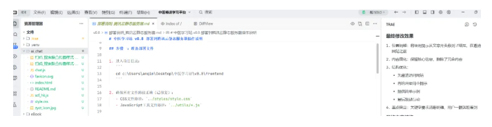 我告诉Trae:"帮我生成一个AI问答网页的前端代码,包含输入框、对话历史、发送按钮,支持Markdown格式展示。"