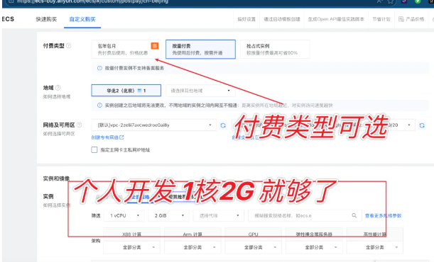 - 推荐配置:1核2G CPU + 40G云硬盘(满足个人网站初期访问需求,性价比最高)
