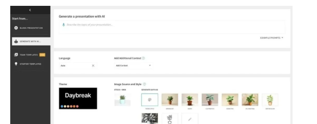 Beautiful.ai 是一个 AI 工具,当你提示幻灯片应包含的内容时,会生成提案板。