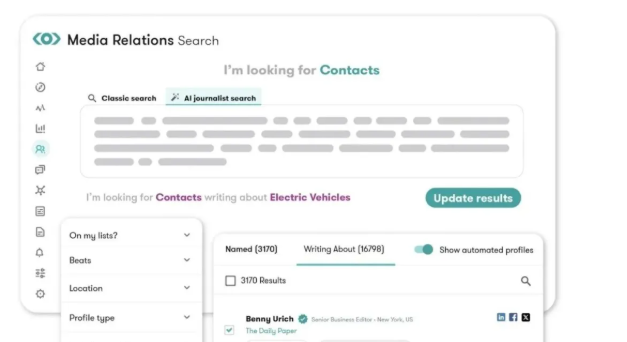 Meltwater的AI驱动记者搜索功能帮助推荐相关记者,推荐适合推介你的品牌。这样你更有可能获得媒体报道。