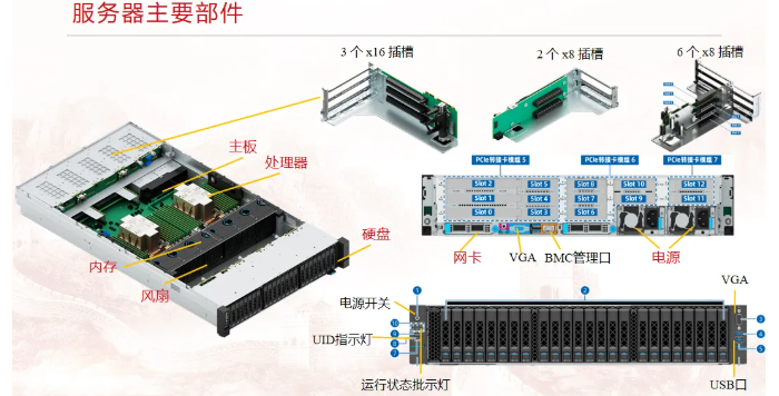 - 尺寸:塔式服务器(类似台式机)适合办公室、家庭等小空间场景,无需额外机柜;机架式服务器(需安装在标准机柜)适合数据中心、企业机房,节省空间但需要配套设施。