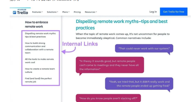 例如,Trello的支柱页的URL是“trello.com/guide/remote-work”,而子页面的URL则是“trello.com/guide/remote-work/communication-collaboration”。