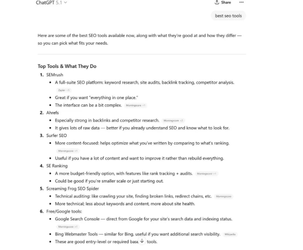 然后将这些结果与像ChatGPT这样的AI工具给出的结果进行比较: