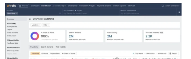 Brand Radar 是Ahrefs旗下的人工智能可见性工具,作为其现有SEO产品生态系统的延伸而构建。